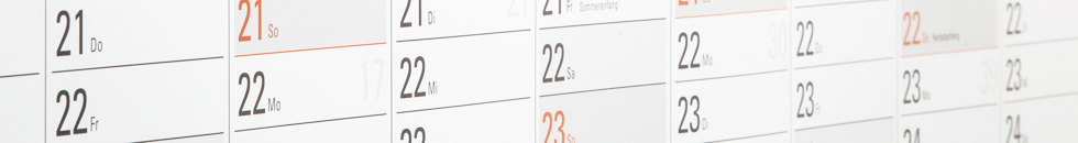 Shows the year as a whole. Large and small formats. With holiday overviews and optional date printing. Calendar colours are variable.